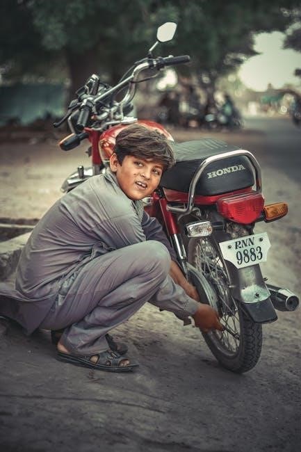 Release the key once the engine starts․ To stop the engine‚ simply turn the key to the “LOCK” position and remove it from the ignition․ Always allow the engine to idle briefly before shutting it off‚ especially after vigorous driving․ Remember to engage the parking brake before exiting the vehicle․